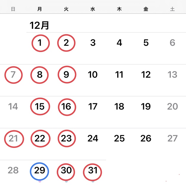 12月の店休日のご案内です。