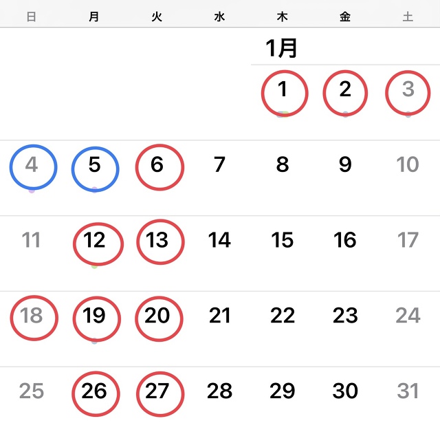 1月の店休日のご案内です。