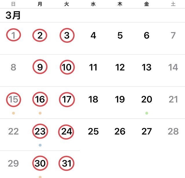 3月の定休日のご案内です。- 2026/01/31 18:21:40