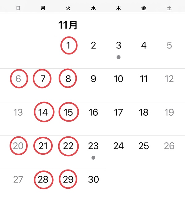 ※11/20(水)は臨時休業とさせていただきますので、宜しくお願いいたします。