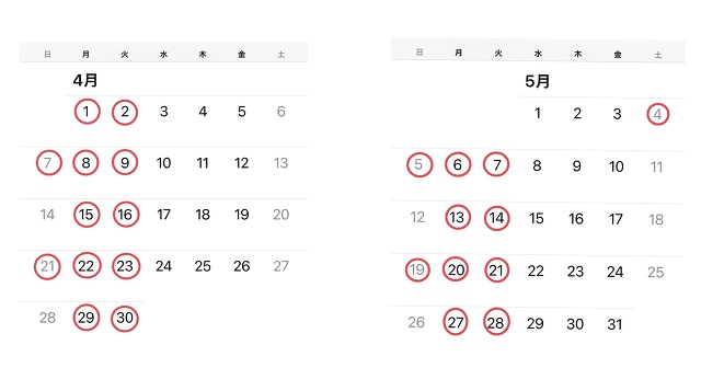 GWのお休みは、5/1(日)〜5/5(木)までとさせていただきます。