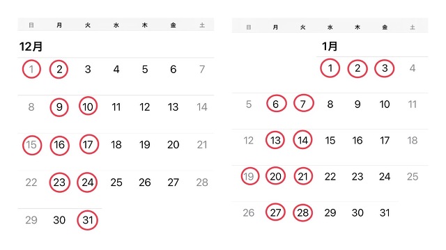 尚、年末年始は12/31〜1/3までお休みとさせていただきます。