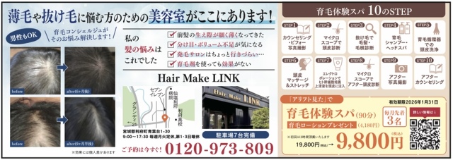 お知らせ - 宮城県宮城郡利府町 美容室『Hair Make LINK』(宮城県宮城郡利府町青葉台)